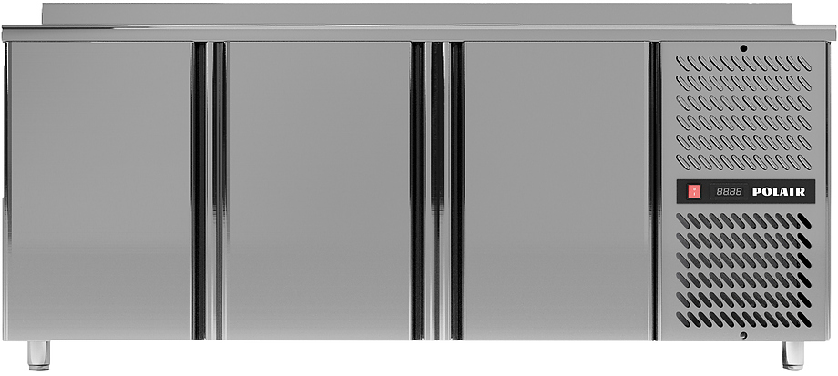 Холодильный стол POLAIR TM3EN- серии BAKERY предназначен для хранения продуктов и обработки ингредиентов в пекарнях, кондитерских, на предприятиях общественного питания и торговли. Стол оснащен 3 охлаждаемыми отделениями под противни с глухими дверями, просторной рабочей поверхностью и бортом. Цельнозаливной корпус включая верхнюю часть и агрегатный отсек изготовлен из нержавеющей стали, обшивка корпуса изнутри - нержавеющая сталь, глухие двери с термоизоляцией ППУ, столешница - из нержавеющей стали.