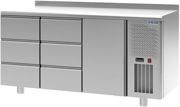 Холодильный стол POLAIR TM3-330-G серии Grande предназначен для хранения продуктов и обработки ингредиентов на рабочей поверхности на предприятиях общественного питания и торговли. Модель оснащена 6 узкими ящиками. Цельнозаливной корпус, ящики и двери изготовлены из нержавеющей стали, обеспечивающей механическую прочность, термоизоляцию, герметичность и долговечность стола, полки - из окрашенной оцинкованной проволки. Оборудование рассчитано на работу при температуре окружающей среды до 43 °С и относительной влажности воздуха до 80%.