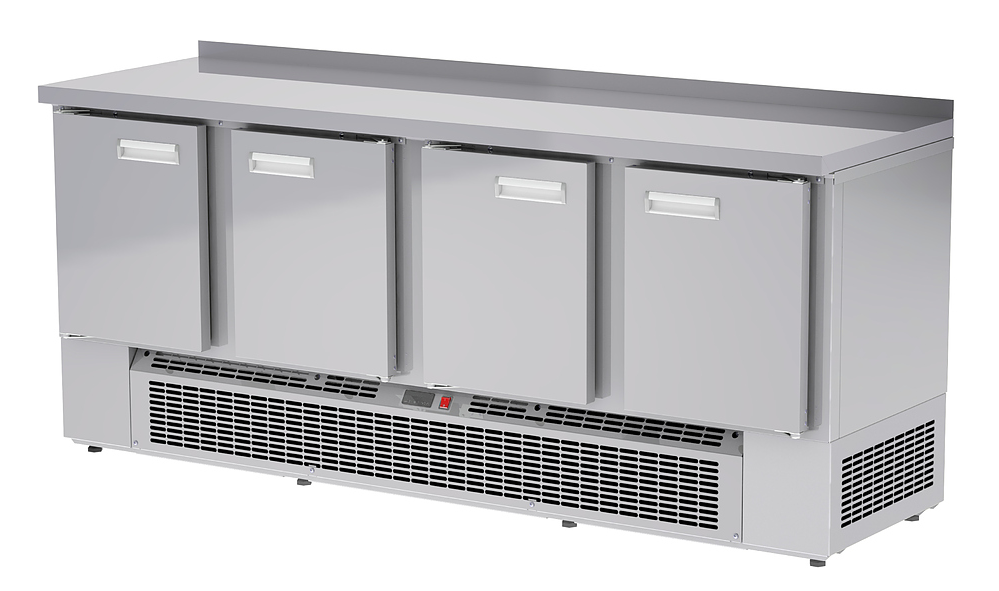 Холодильный стол АРКТО СХСН-4-70 предназначен для хранения предварительно охлажденных пищевых продуктов на предприятиях общественного питания и торговли. Модель оснащена расположенным внизу агрегатным отсеком, столешницей с задним бортом, 3 распашными дверьми и электронным блоком управления с цифровым дисплеем. Корпус выполнен из высококачественной нержавеющей стали.